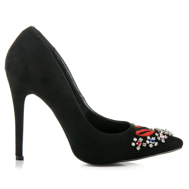 Weide Weide Wildleder-Heels mit Kristallen schwarz