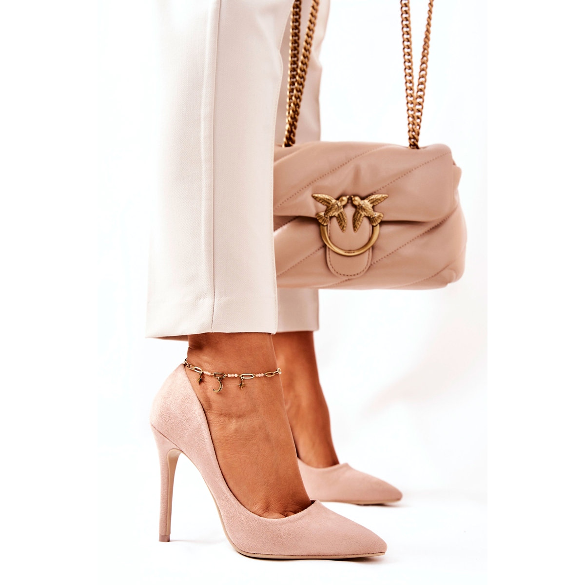 Das Modell mit 10,5 cm hohem Absatz zeichnet sich durch eine spitze Spitze und eine rutschfeste Sohle aus, die die Stabilität beim Gehen erhöht. Durch die beige Farbe und das Wildleder-Finish passen diese High Heels zu verschiedenen Stilen und passen perfekt zu Kleidern, Hosen und Röcken.