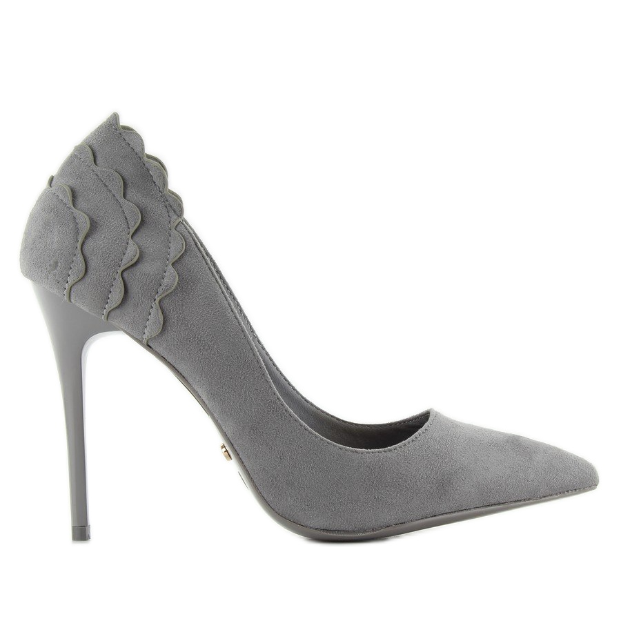 Graue Wildleder-Stilettos mit Rüschen LE031 sind eine ideale Wahl für Frauen, die Wert auf Eleganz und dezenten Stil legen. Diese klassischen Schuhe mit schmalem 10,5-cm-Absatz zeichnen sich nicht nur durch ihre Ästhetik, sondern auch durch ihren Tragekomfort aus. Sie bestehen aus fleischigem, ökologischem Wildleder und bieten hervorragende Qualität und ganztägigen Komfort.
