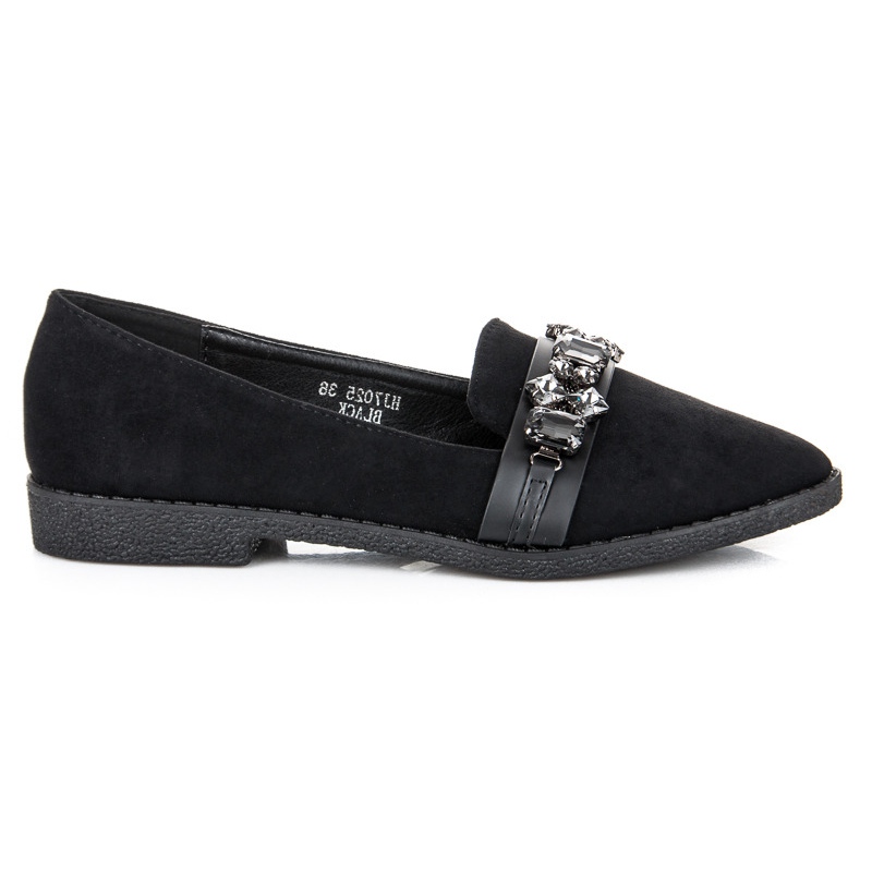 Entdecken Sie Eleganz und Komfort in einem der neuesten Modelle des Herstellers Sweet Shoes – schwarze Wildleder-Mokassins, verziert mit Kristallen. Diese stilvollen Schuhe sind die perfekte Wahl für Frauen, die modisches Design mit Tragekomfort verbinden möchten.