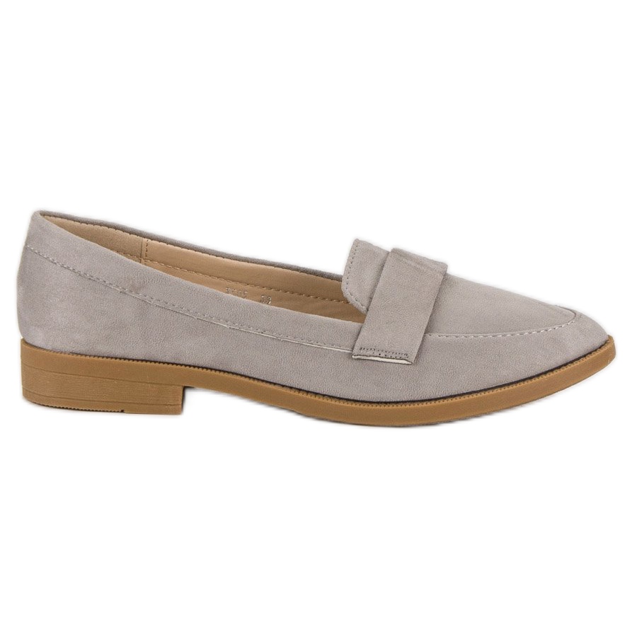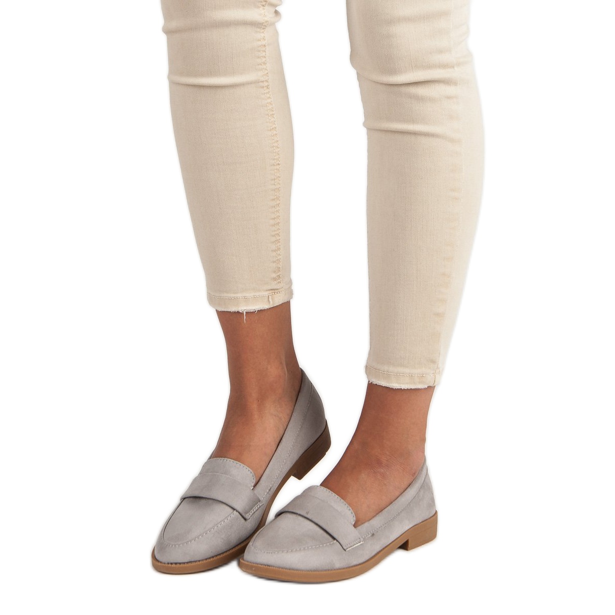 Verleihen Sie Ihrer Garderobe einen Hauch von Eleganz mit Wildleder-Loafern von Small Swan. Diese stilvollen Slip-On-Schuhe bestehen aus hochwertigem ökologischem Wildleder in einem modischen Grauton, der perfekt zu den neuesten Trends passt. Silberne Akzente in Kombination mit einer braunen Sohle sorgen für optischen Charme und der 3 cm hohe Absatz sorgt für Tragekomfort den ganzen Tag.