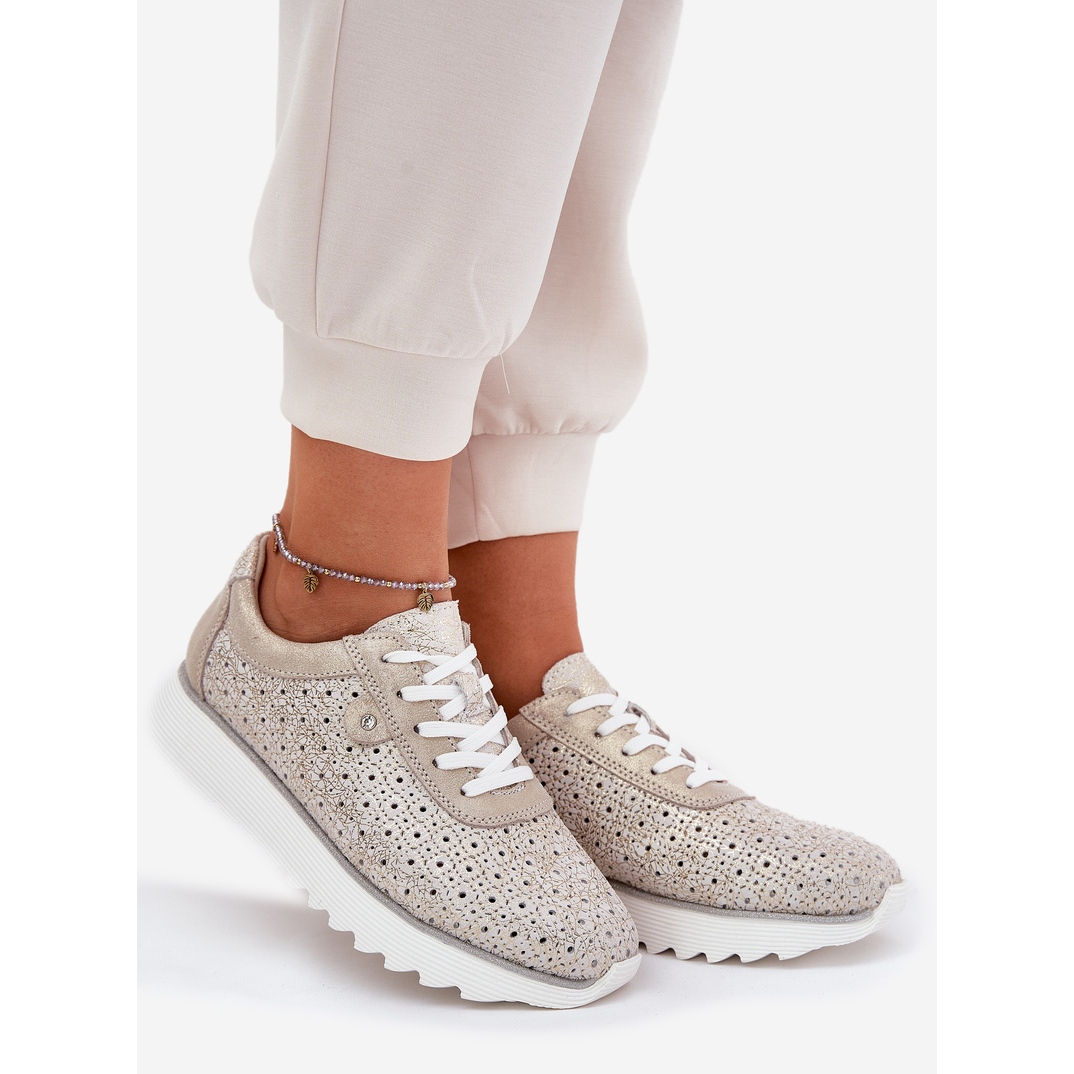 S.Barski S.Barski Wildleder-Openwork-Sneaker auf der Zloty-Plattform LR51-927 golden