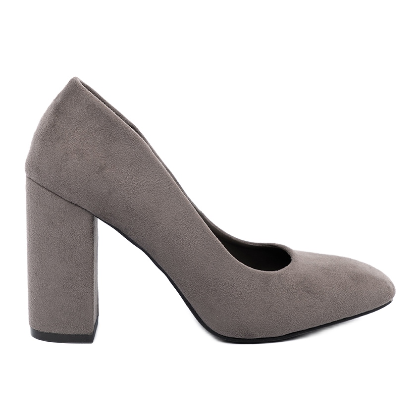 Ein hoher Absatz in Pfostenform mit einer Höhe von 9,5 cm macht nicht nur die Figur schlanker, sondern sorgt auch für Stabilität und Tragekomfort, was im Alltag äußerst wichtig ist. Durch die Verwendung von hochwertigem ökologischem Wildleder sehen die Schuhe besonders elegant aus und ihre universelle graue Farbe passt perfekt zu verschiedenen Stilrichtungen.