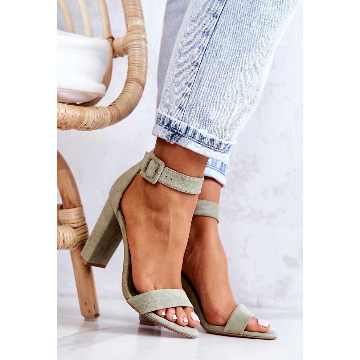 Entdecken Sie einzigartige Sandaletten der Marke FB2, die Eleganz mit Komfort verbinden. Das hellblaue Modell ist vollständig aus ökologischem Wildleder gefertigt, was ihm einen modernen und stilvollen Charakter verleiht. Dank des verstellbaren Riemens mit Schnalle passen sich die Sandalen perfekt dem Fuß an und sorgen den ganzen Tag über für Komfort.