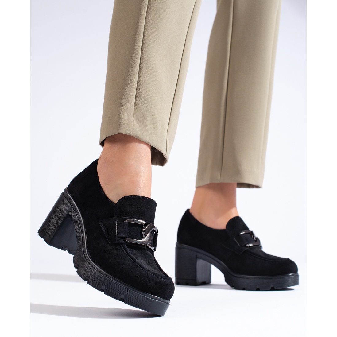 Die hochhackigen Schuhe von W. Potocki sind eine elegante Wahl für jede moderne Frau, die Wert auf Stil und Komfort legt. Aus ökologischem Wildleder in klassischem Schwarz gefertigt, eignen sich diese Schuhe sowohl für den Alltag als auch für besondere Anlässe.