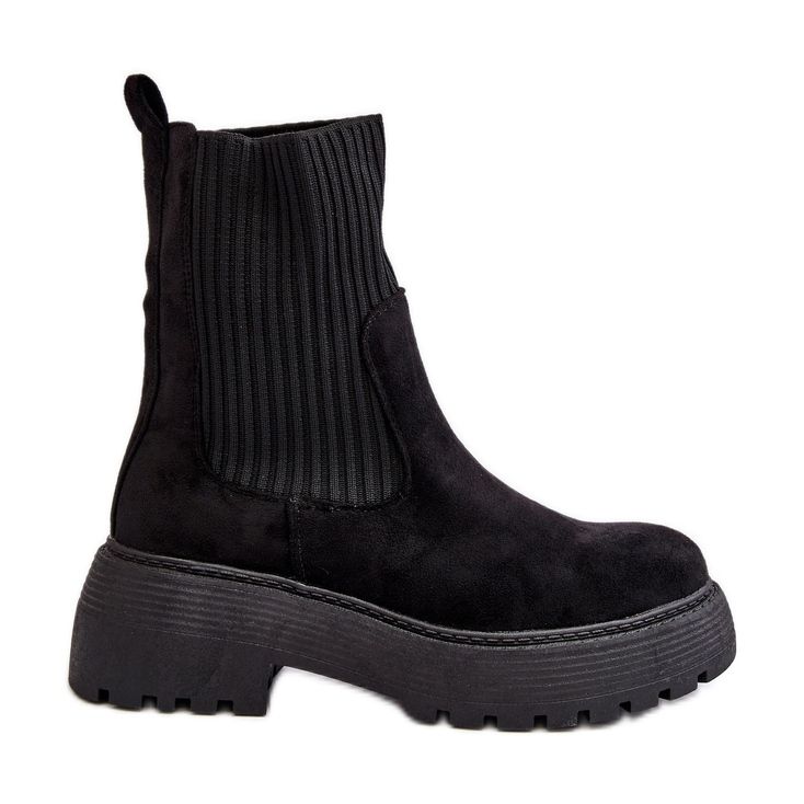Wildleder-Stiefeletten mit Plateausohle und flachem Absatz in Schwarz Rewam ist ein Synonym für Stil gepaart mit Komfort. Diese äußerst bequemen Schuhe werden sicherlich auch die anspruchsvollsten Benutzer zufriedenstellen, die täglich Wert auf Ästhetik und Funktionalität legen.