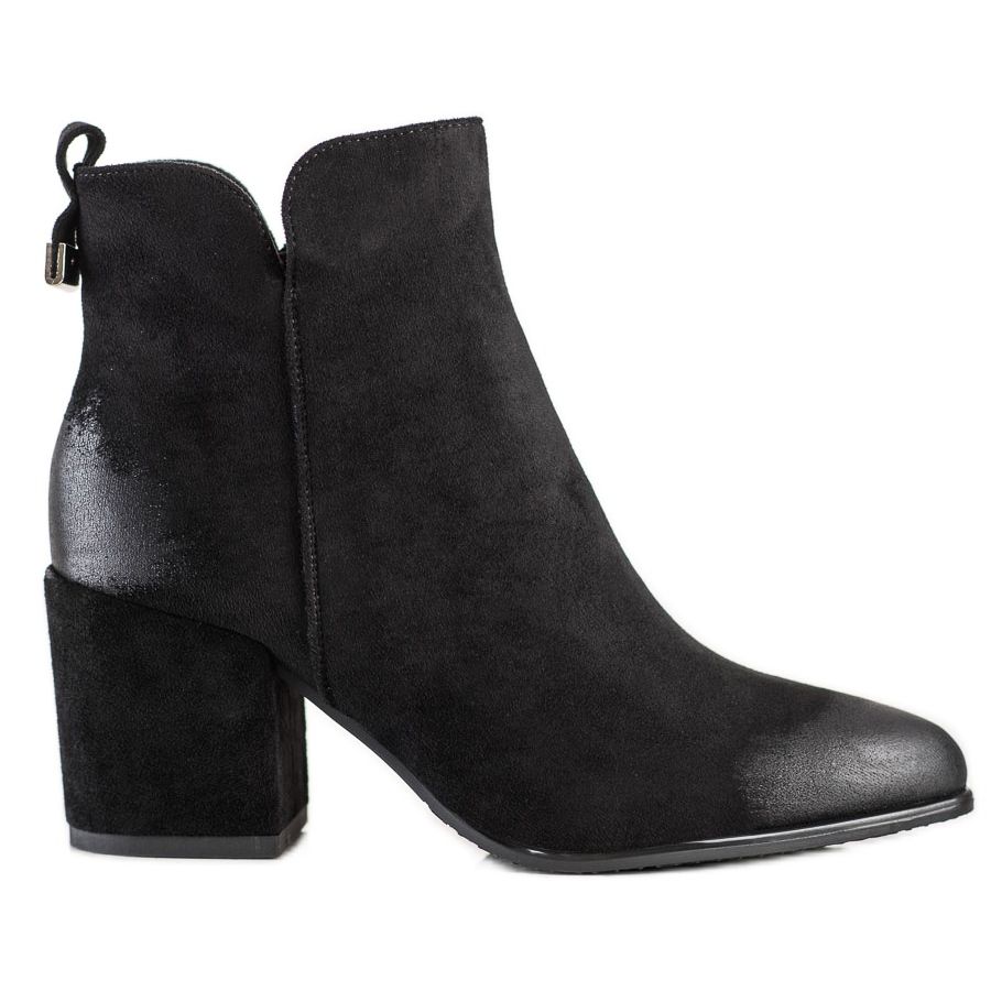 Wir präsentieren VINCEZA Wildleder-Stiefeletten mit hohem Absatz in elegantem Schwarz, perfekt für jede Frau, die Komfort mit Klasse verbinden möchte. Diese Stiefel sind aus hochwertigem ökologischem Wildleder gefertigt, was ihnen ein luxuriöses Aussehen verleiht und sie gleichzeitig umweltfreundlich macht.