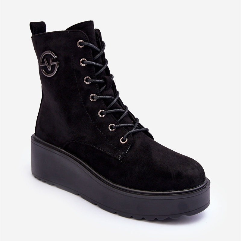 Vinceza Vinceza Wildleder-Worker-Stiefeletten mit massivem Plateau-Keilabsatz in Schwarz von Lavica