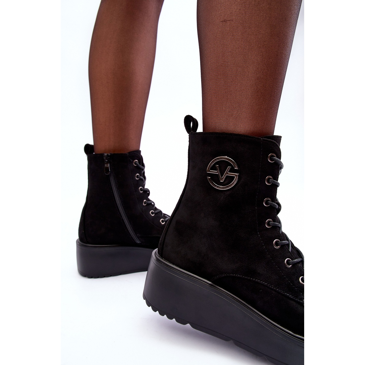 Wir präsentieren Wildleder-Arbeiterstiefel auf massivem Plateau der Marke Vinceza, die ein perfektes Angebot für die Herbst-/Wintersaison sind. Aus hochwertigem Öko-Wildleder gefertigt, ziehen diese eleganten Stiefeletten nicht nur die Blicke auf sich, sondern sorgen auch für Tragekomfort. Sie stehen auf einer soliden Plattform und einem Keil und garantieren Stabilität und Komfort bei jedem Schritt.
