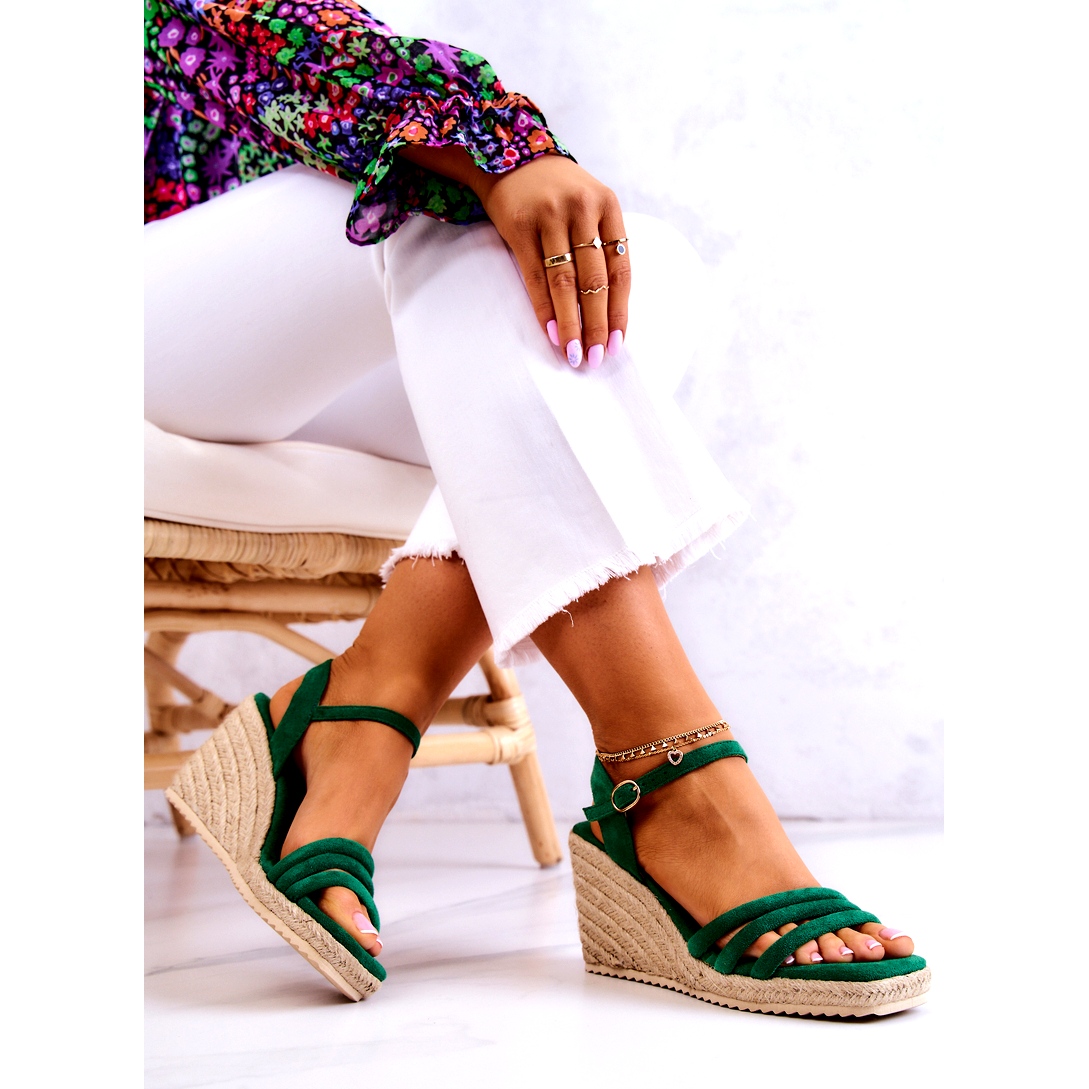Details: FJ1 Wildledergrüne Louisiana-Keilsandalen