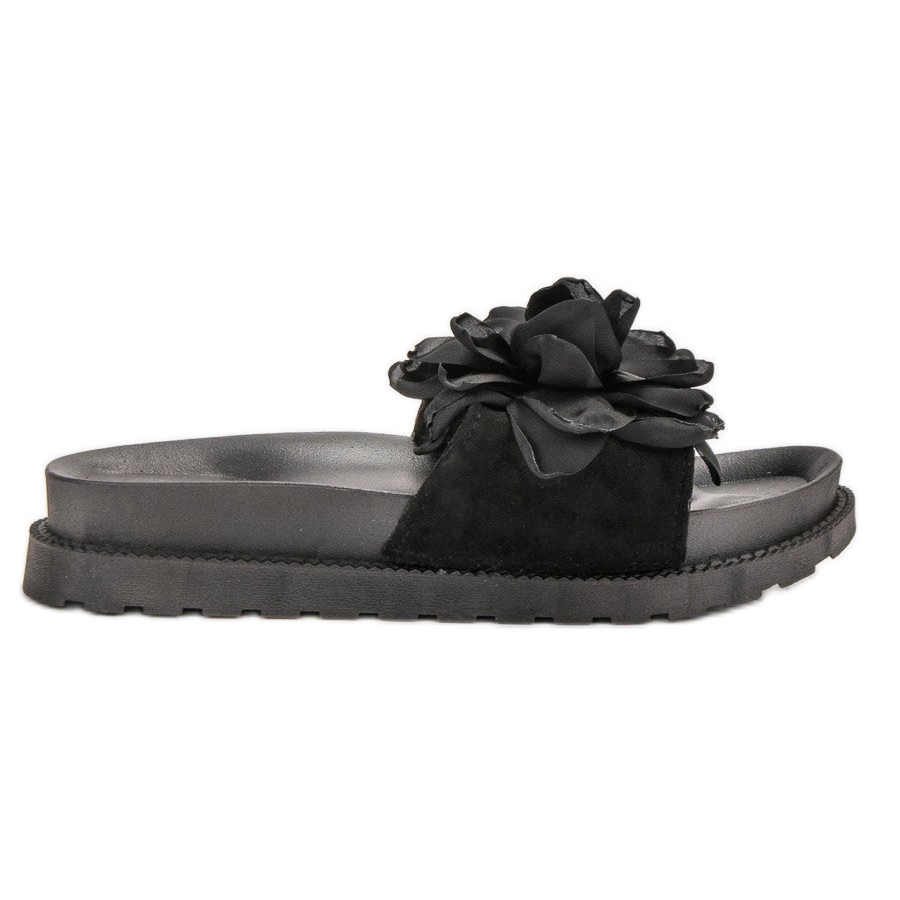 Entdecken Sie Eleganz und Komfort mit den Wildleder-Slippern von Queen Vivi in Schwarz, die die perfekte Ergänzung zu jedem Frühlings- und Sommer-Styling sind. Diese wunderschönen Schuhe begeistern durch ihre dezente Ästhetik, verziert mit Blumenmotiven, die ihnen Charme und Frische verleihen.