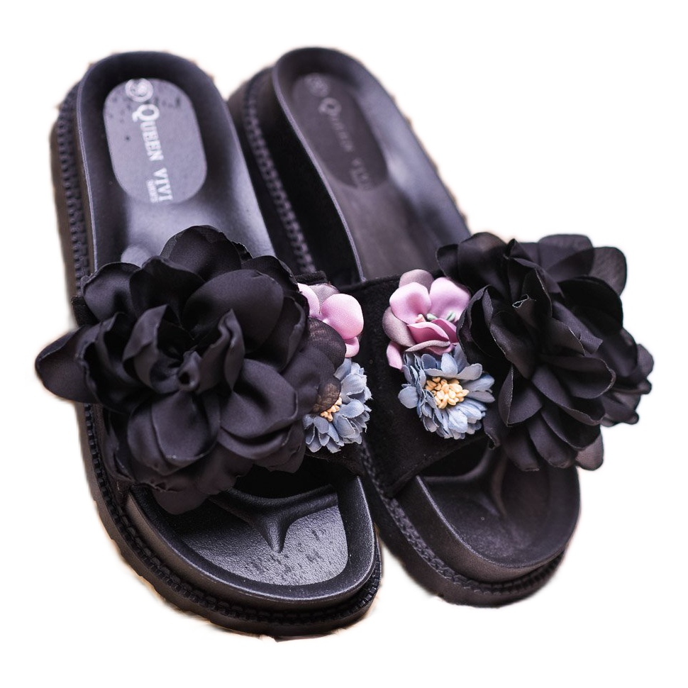 Details: Queen Vivi Wildlederhausschuhe mit Blumen schwarz