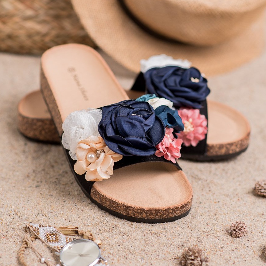Details: SHELOVET Wildlederhausschuhe mit Blumen schwarz