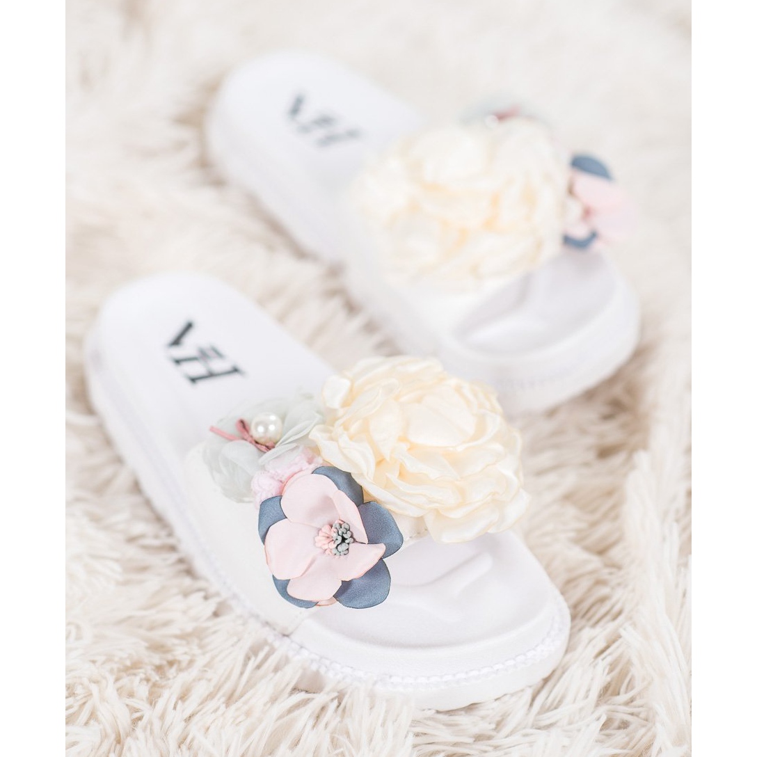 Details: SHELOVET Wildlederhausschuhe mit Blumen weiß