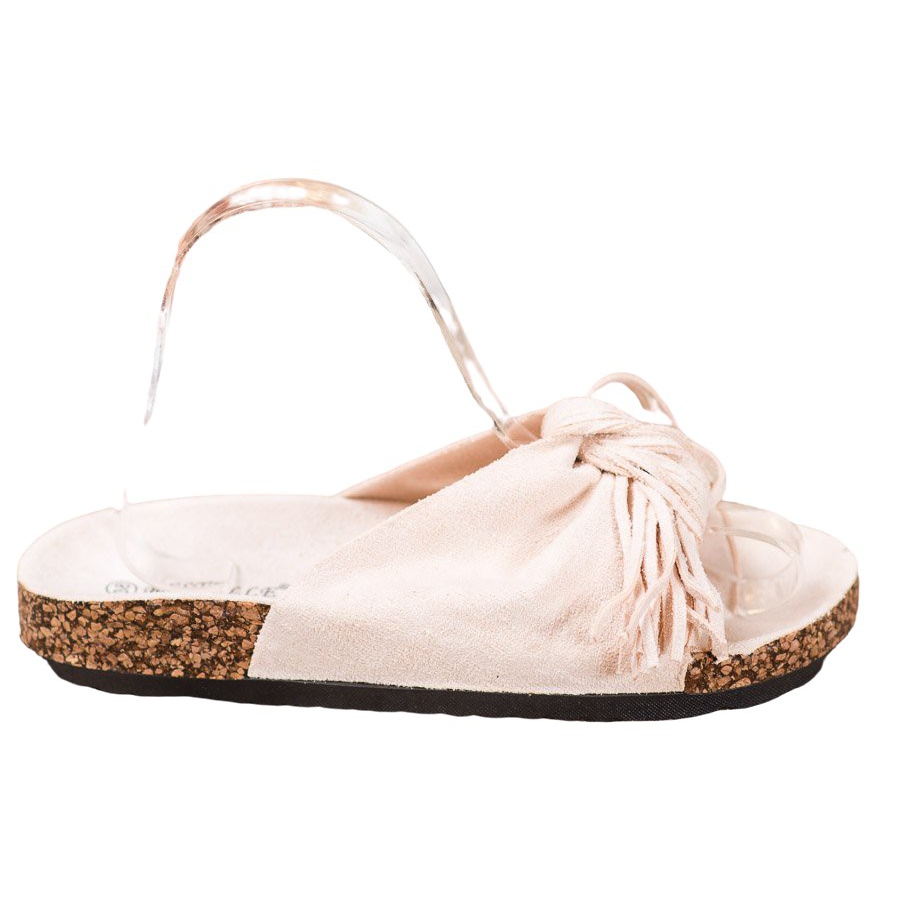 Bestelle Bestelle Wildlederhausschuhe mit Fransen beige
