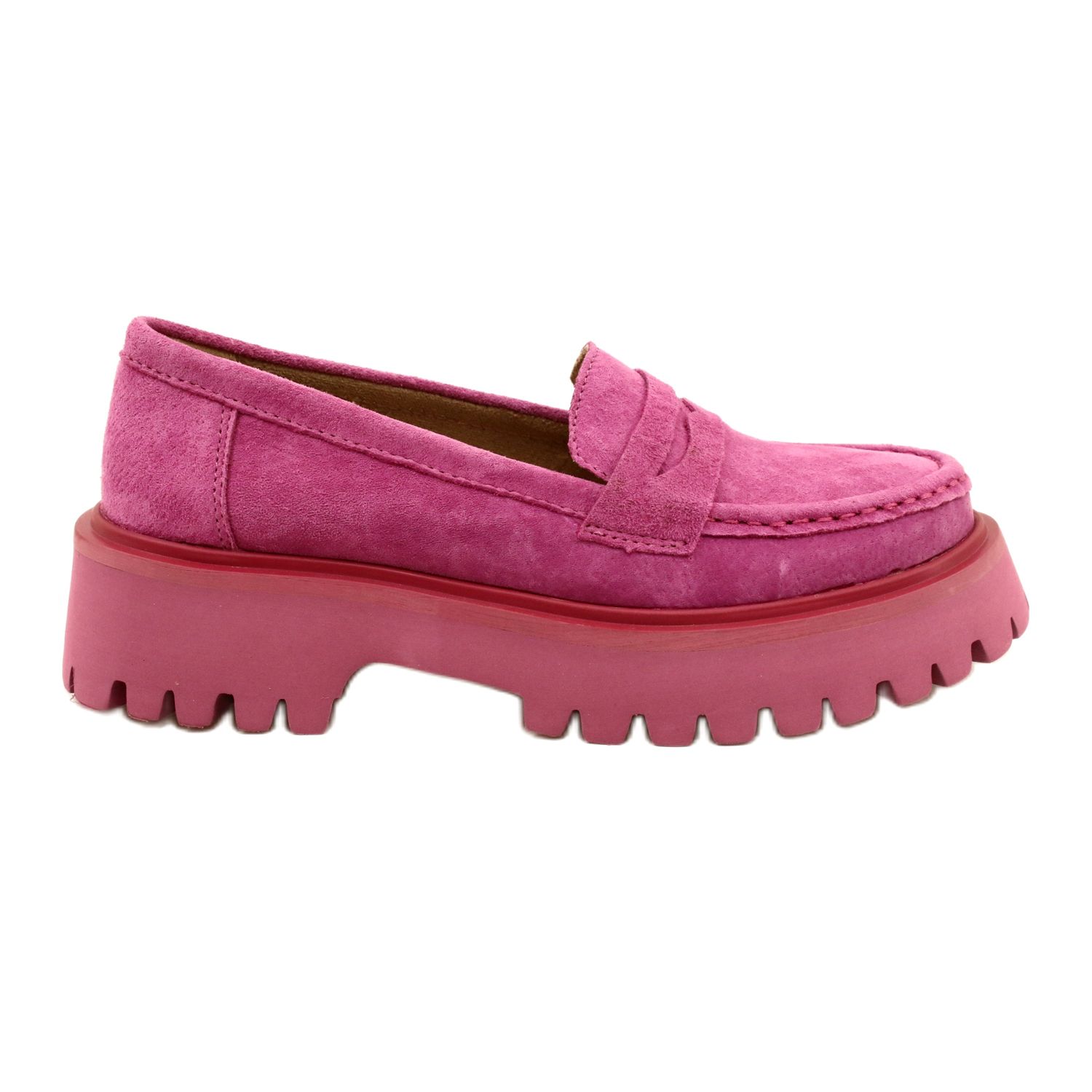 Klassische Slipper in einer modernen Ausgabe - bestehend aus hochwertigem Wildleder -Naturleder in intensiven Fuchsien. Eine leicht erhöhte Sohle und eine 4,5 -cm -High Heel -Modelle modellieren die Silhouette auf subtile Weise und verleihen den Schuhen einen Charakter, und der Ledereinsatz sorgt für den Komfort des ganzen Tages. Perfekt für Frauen, die Eleganz mit einem Hauch von Ausdruckskraft suchen.