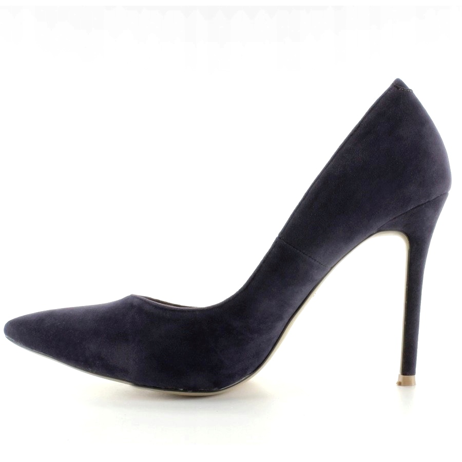Wildleder-Stiletto-Pumps 5438 in Marineblau sind ein elegantes Accessoire, das jede Frau in ihrer Sammlung haben sollte. Diese Pumps aus dickem Öko-Wildleder vereinen Stil mit Komfort. Ihr klassisches Design wird durch eine spitze Spitze bereichert, die die Beine optisch verlängert.