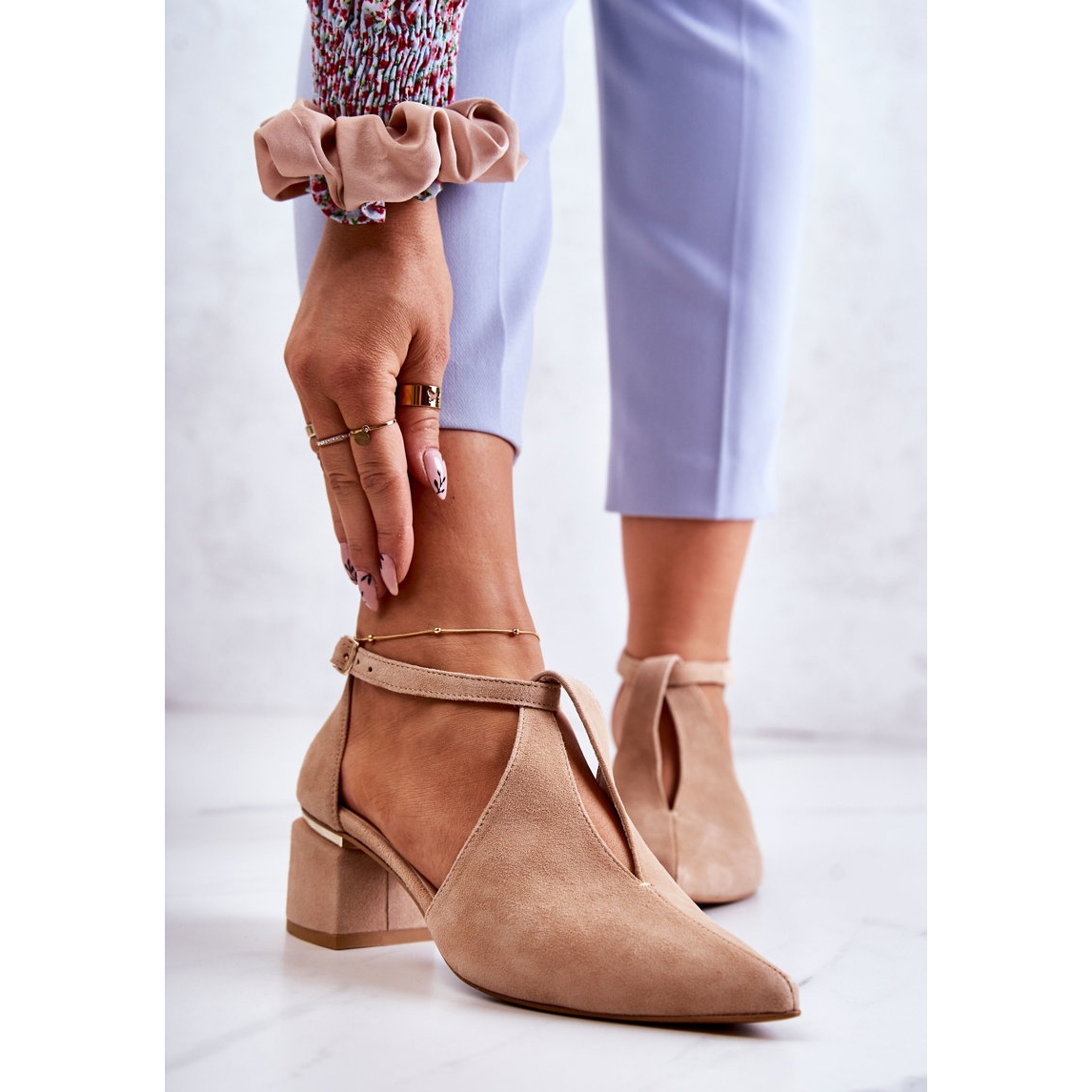 Details: Wildlederpumps mit Absatz Laura Messi 2309 Hellbeige
