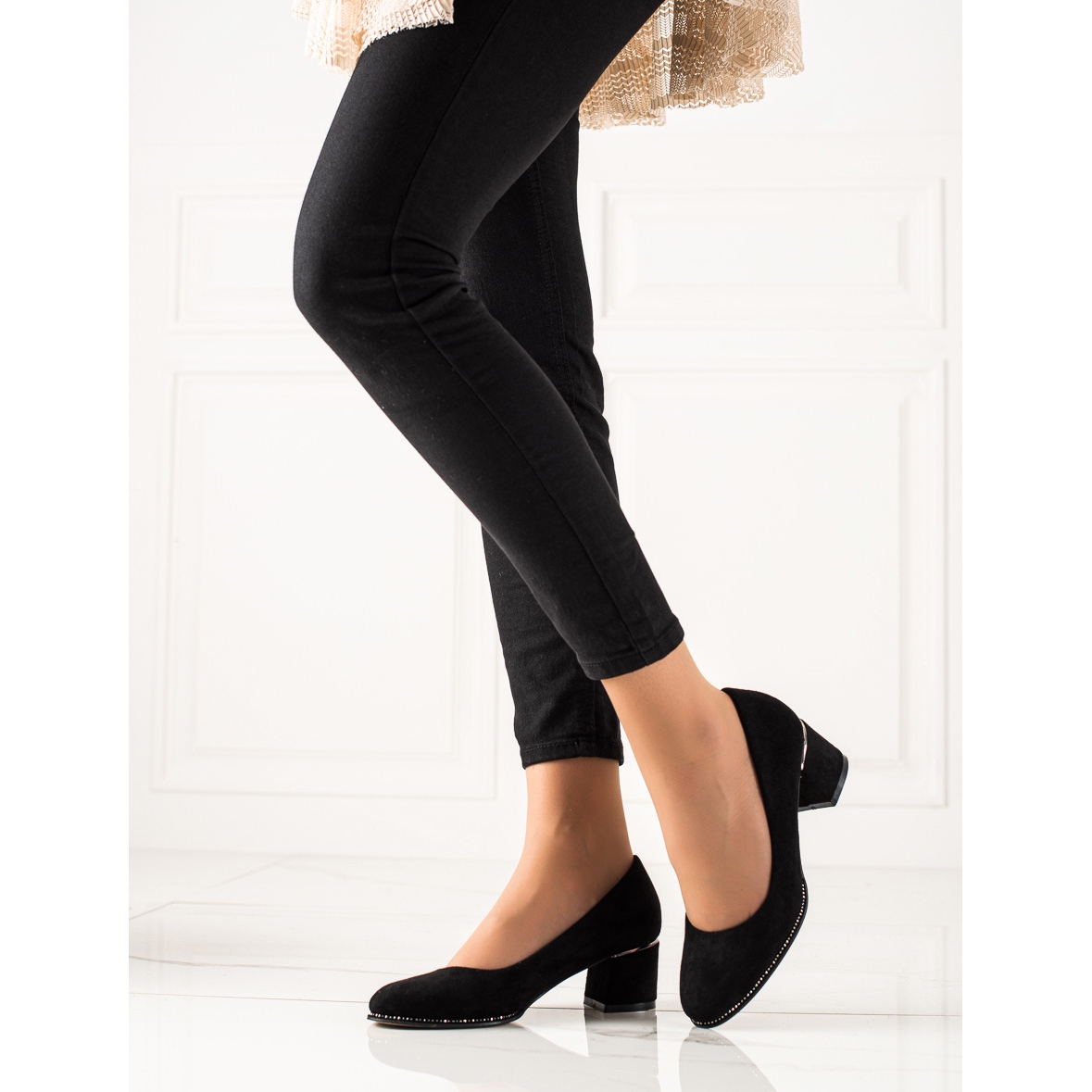 Diese Pumps aus umweltfreundlichem Wildlederimitat kombinieren klassischen Stil mit einem modernen Touch. Zarte Strasssteine verleihen ihnen Glanz und machen sie zu einer eleganten Ergänzung für jedes Styling. Die runde Spitze und der 5 cm hohe Blockabsatz sorgen für Stabilität und Tragekomfort und machen sie zu einer idealen Wahl für jede Jahreszeit – Frühling, Sommer, Herbst oder Winter.