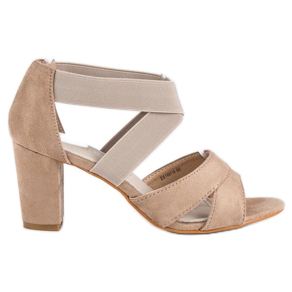 Sandalen aus hochwertigem ökologischem Wildleder passen sich perfekt dem Fuß an und bieten gleichzeitig einen erhabenen Look. Durch ihre gedämpften Farben – Braun und Beige – passen sie zu vielen Stilen, sowohl zu alltäglichen als auch zu formelleren.