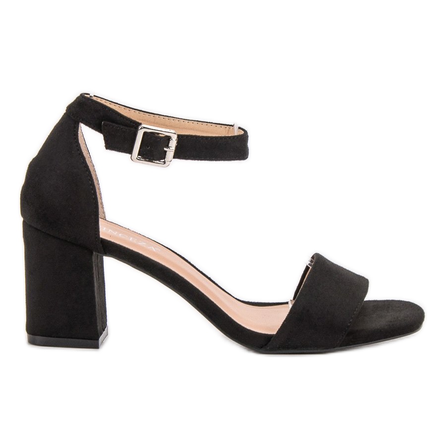 Die aus ökologischem Wildleder gefertigten Sandalen sehen äußerst beeindruckend aus und passen durch ihre schwarze Farbe zu fast jedem Styling. Dank der Absatzhöhe von 7 cm werden sie zu einer eleganten Alternative zu herkömmlichen High Heels und sorgen für Weiblichkeit und Chic. Ein zusätzlicher Vorteil ist die Schnalle, die für einfaches Anziehen und eine perfekte Passform am Fuß sorgt.