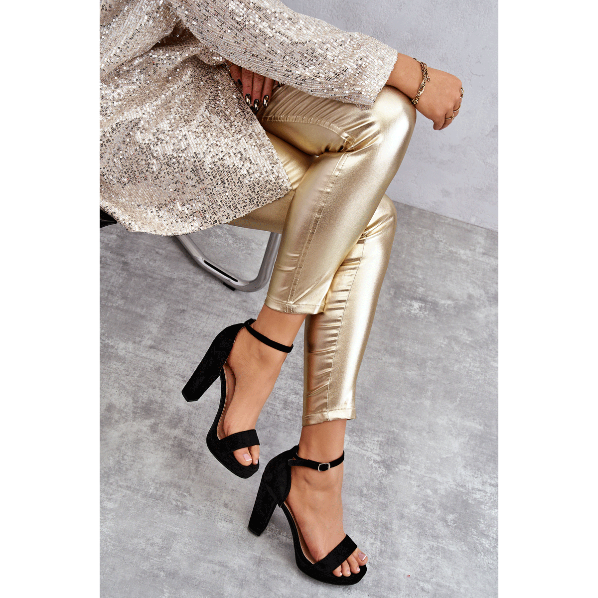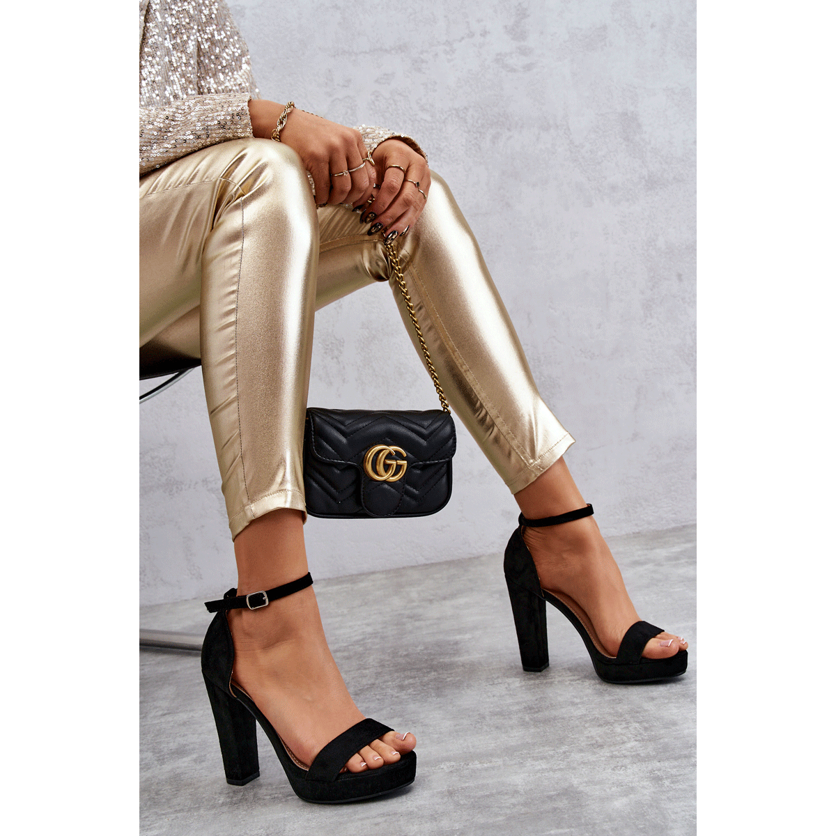Wildleder -Sandalen auf der Säule schwarz spektakulär