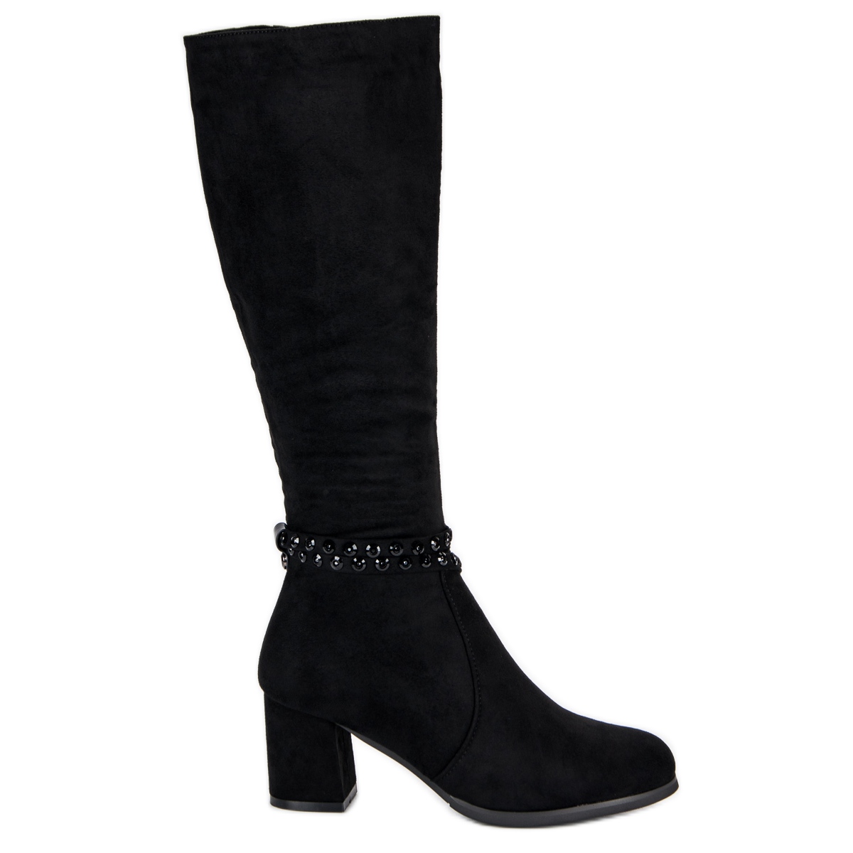 Stilvolle und elegante Wildlederstiefel mit hohen Absätzen in Schwarz sind die perfekte Wahl für jede modebewusste Frau, die sich von der Masse abheben möchte. Sie bestehen aus ökologischem Wildleder und vereinen Komfort und einzigartiges Design. Diese kniehohen Stiefel werden mit Sicherheit zu einem unverzichtbaren Bestandteil Ihrer Herbstgarderobe.