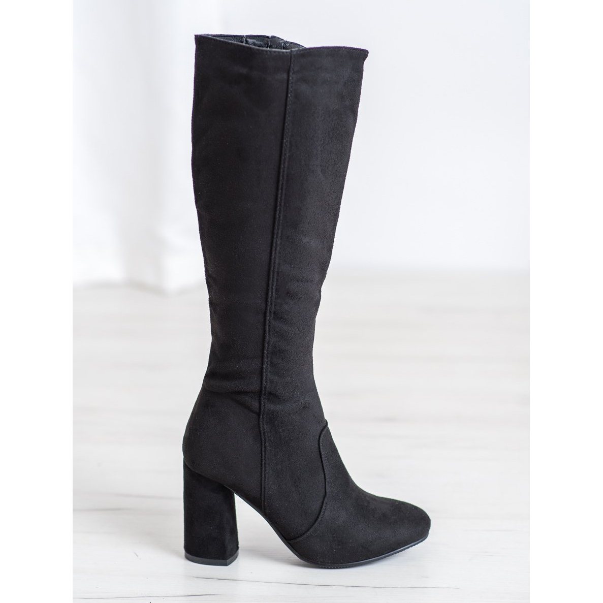 Wir bieten elegante Seastar-Stiefel mit hohen Absätzen an, die eine perfekte Wahl für jede modebewusste Frau sind. Aus ökologischem Wildleder in klassischem Schwarz gefertigt, werden sie zu einem universellen Element Ihrer Garderobe.
