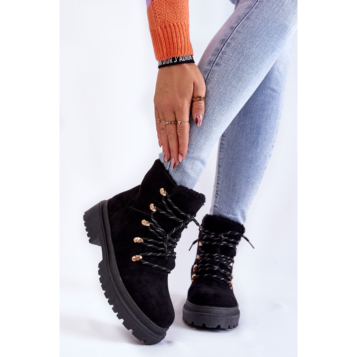 Das Außenmaterial ist Wildleder-Faux-Wildleder, was ihnen ein luxuriöses Aussehen verleiht, und durch die schwarze Farbe passen sie zu vielen Stilen. Bellita Stiefeletten sind die perfekte Wahl für Frauen, die eine Kombination aus Komfort, Wärme und modischem Design suchen. Dank ihnen gewinnt jedes Herbst-Styling an Charakter!