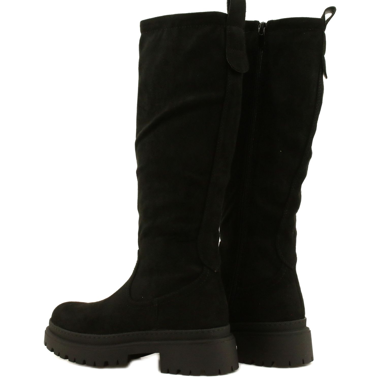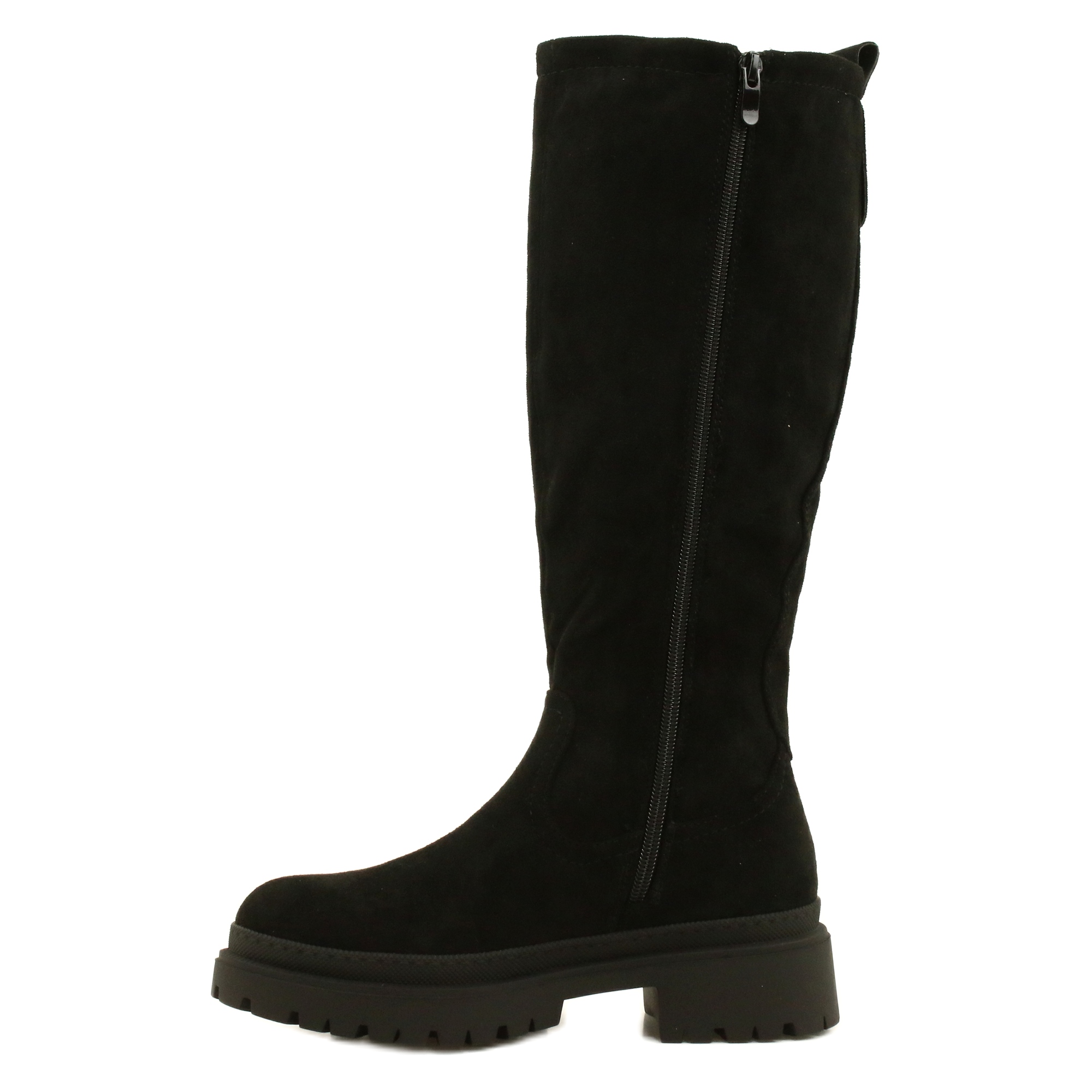 Evento Wildleder-Stiefel auf einem dicken Boden 22KZ35-5223-Eleganz und Komfort für den Winter. Klassische schwarze Stiefel aus ökologischem Wildleder -Leder kombinieren Frauen geschnitten mit praktischen Lösungen: Die Pelzisolierung bietet thermischen Komfort und Luftzirkulation, und der dicke Boden mit 4 cm hohen Isolaten vor Kälte und fügt ein paar Zentimeter Höhe hinzu. Eine flache Ferse und eine runde Nase garantieren während des täglichen Verschleißes Stabilität und Komfort, und das Schloss erleichtert das Anziehen und Abfahren.