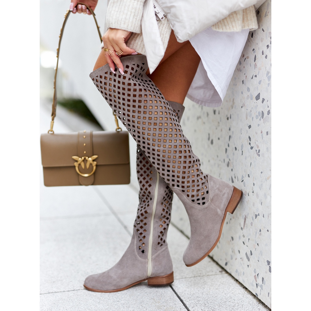 Entdecken Sie den einzigartigen Charme der Wildlederstiefel PA2 mit durchbrochenem Muster in Hellbraun, die die perfekte Ergänzung zu jedem Damen-Styling sind. Diese eleganten Stiefel eines polnischen Herstellers sind sorgfältig aus hochwertigem Naturleder gefertigt, was nicht nur ein ästhetisches Erscheinungsbild, sondern auch Haltbarkeit und Tragekomfort garantiert.