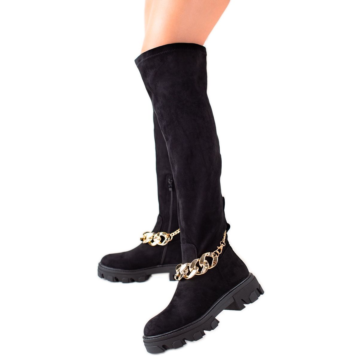 Diamantique Wildleder-E-Stiefel mit Goldkette sind ein Must-Have für die Herbst-/Wintersaison und passen perfekt zu Kleidern und Hosen. Jede Frau, die modisch aussehen und sich wohl fühlen möchte, sollte sie in ihrer Sammlung haben! Das Produkt wird in der Originalverpackung des Herstellers geliefert, was es auch zu einer tollen Geschenkidee macht.