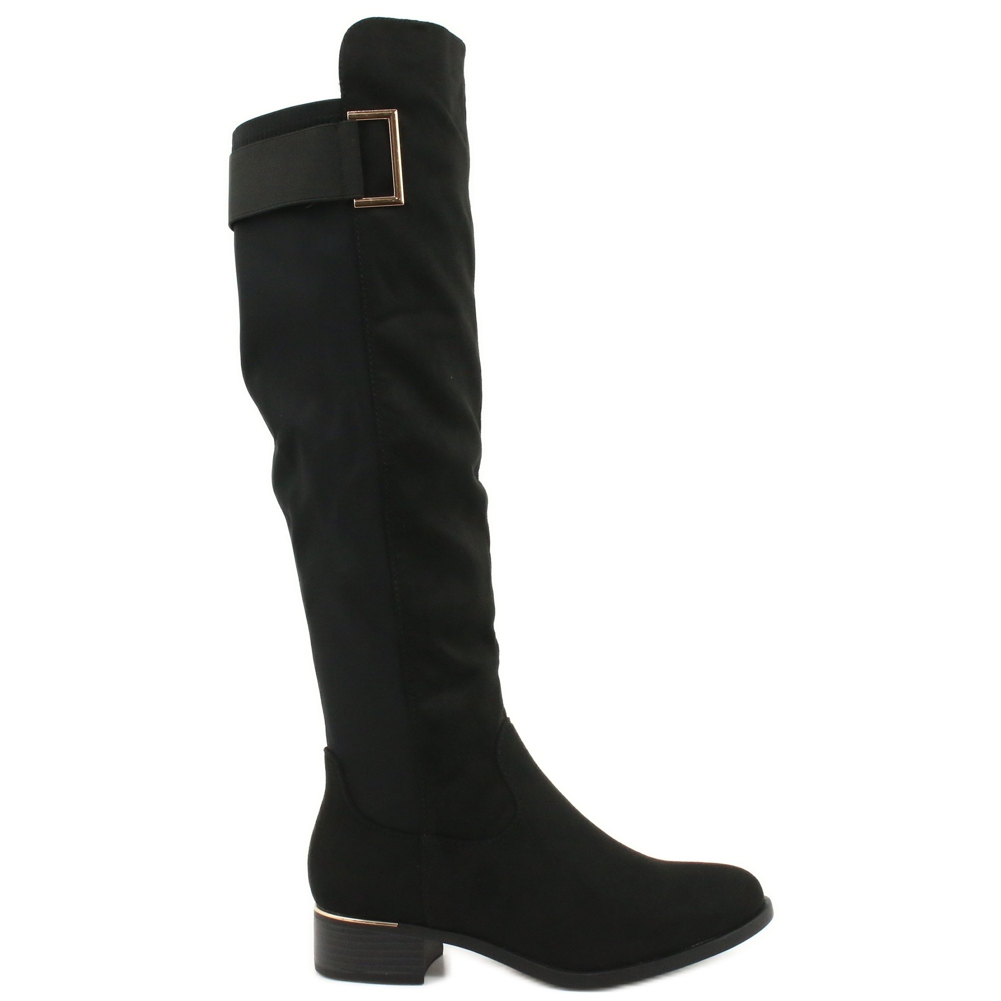Die Golden Buckle Wildlederstiefel von Evento sind ein perfektes Angebot für Herbst und Winter für jede Frau, die Wert auf Eleganz und Komfort legt. Diese klassischen schwarzen Stiefel vereinen modernes Design und Funktionalität, was sie nicht nur stilvoll, sondern auch äußerst angenehm zu tragen macht.