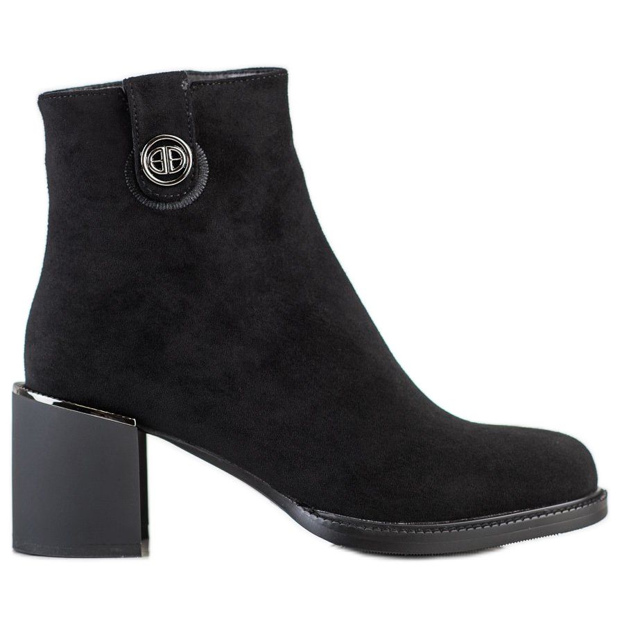 Filippo Wildleder-Stiefeletten mit breitem Absatz in Schwarz sind die perfekte Wahl für Frauen, die Wert auf Eleganz und Komfort im Alltag legen. Aus hochwertigem Öko-Wildleder gefertigt, vereinen diese Stiefeletten klassischen Stil mit modernen Akzenten.