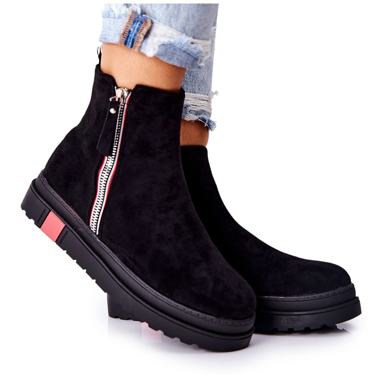 Die Stiefel haben einen äußeren, dekorativen Reißverschluss, der ihnen einen modernen Charakter verleiht, und einen inneren Reißverschluss, der das An- und Ausziehen der Schuhe erleichtert. Dank der Isolierung eignen sie sich perfekt für kältere Tage und sorgen für Komfort und Wärme.