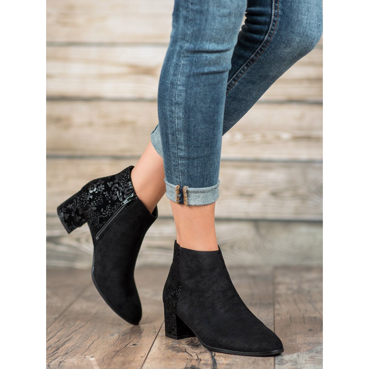 Verleihen Sie Ihrem Styling einen einzigartigen Charakter mit den Wildleder-Stiefeletten von Filippo mit Blumenmuster. Diese eleganten Schuhe aus hochwertigem ökologischem Wildleder sind eine perfekte Kombination aus klassischem und modernem Design. Schwarze Stiefeletten passen perfekt in die Herbst- und Wintersaison und bieten dank der Innenisolierung Wärme und Komfort.