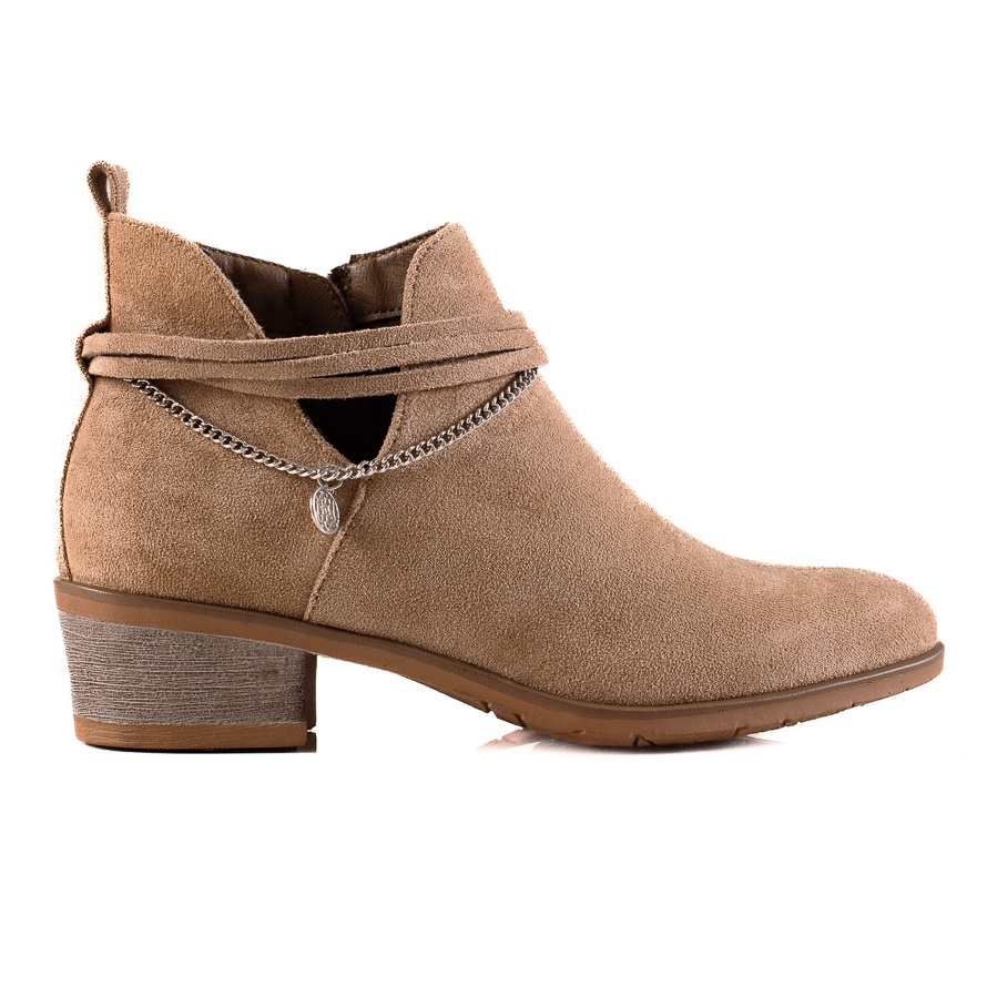 Entdecken Sie einzigartigen Stil und Komfort mit braunen Stiefeln der Marke Filippo. Diese Damenstiefeletten aus der KeeShoes-Kollektion verbinden elegante Lässigkeit mit einem Hauch von Luxus dank einer dekorativen Kette und einem mit Strasssteinen besetzten Riemen. Sie bestehen aus hochwertigem ökologischem Wildleder und bieten nicht nur ein attraktives Aussehen, sondern auch Langlebigkeit im Gebrauch.