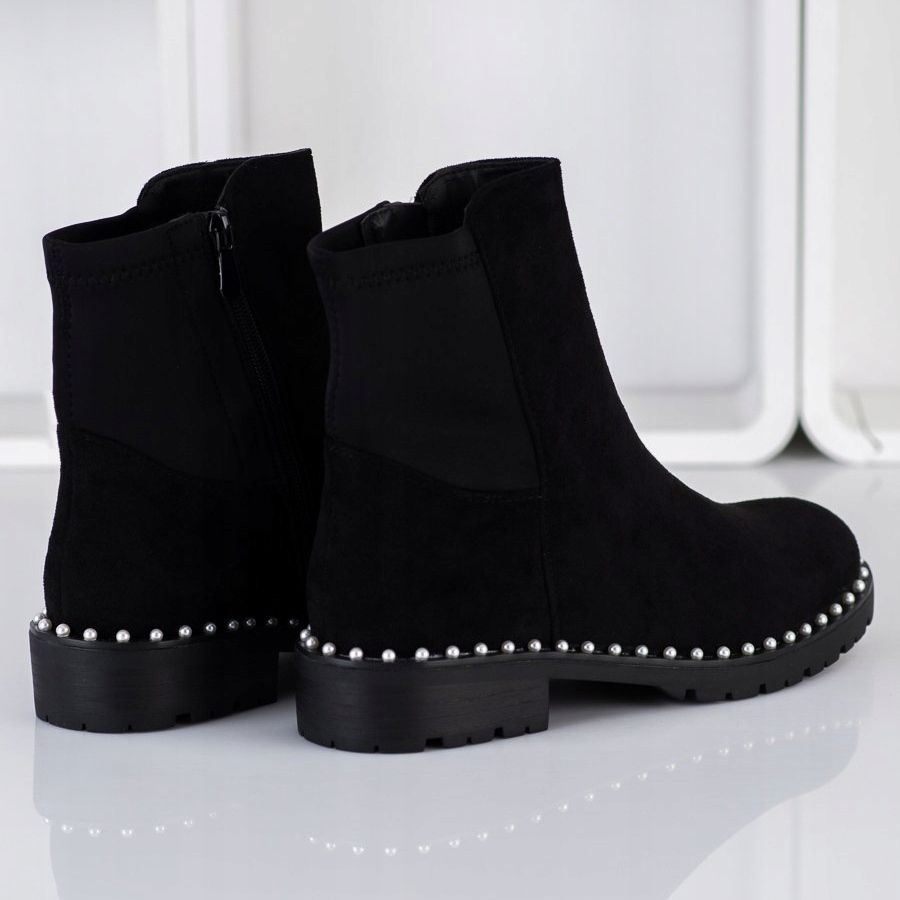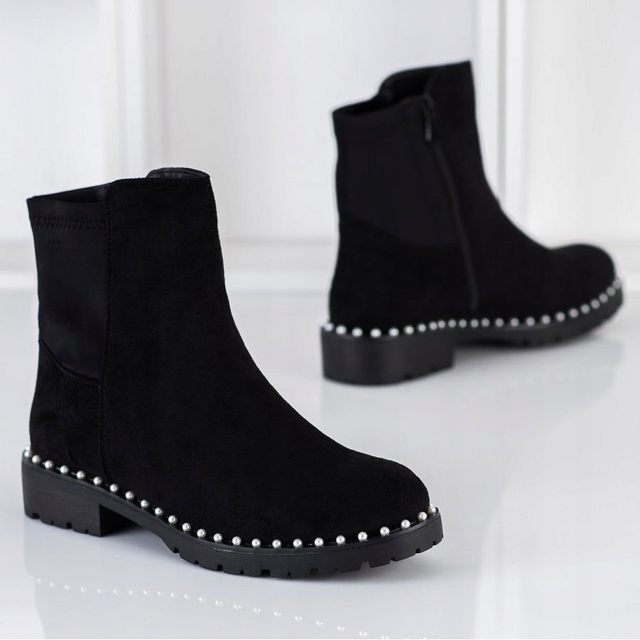 Bestelle Bestelle Wildlederstiefeletten mit Perlen schwarz