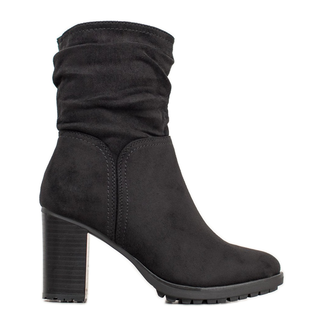 Wir präsentieren elegante und bequeme Super Me Wildleder-Stiefeletten mit Reißverschluss in der modischen schwarzen Farbe, die eine perfekte Wahl für die Herbst-/Wintersaison sind. Diese Damenschuhe aus ökologischem Wildleder zeichnen sich durch ein gerüschtes Obermaterial aus, das bis über den Knöchel reicht und jedem Styling Eleganz und Weiblichkeit verleiht.