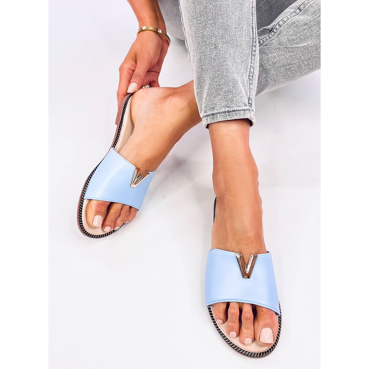 Frauenstiefel Weidenblaue Hausschuhe - blauer, eleganter Minimalismus mit subtilem Glanz. Hausschuhe aus ökologischem Leder erregen mit einer goldförmigen Golddekoration Aufmerksamkeit, die ihnen einen deutlichen, aber gedämpften Akzent verleiht. Perfekt für alltägliche, lässige Stilisierungen - zum Spaziergang, an warmen Tagen zu arbeiten oder sich mit Freunden zu treffen.