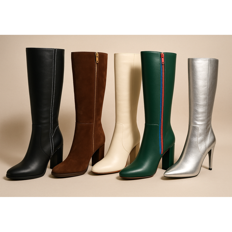 Winter 2025 ist eine Zeit hochwertiger Materialien. Natürliches Leder bleibt der unbestrittene Anführer - es ist langlebig, atmungsaktiv und kommt wunderschön heraus. Wildleder verleiht den Kosaken ein elegantes, weiches Aussehen, erfordert jedoch eine angemessene Pflege. Lackiertes Leder ist eine Wahl für Menschen, die gerne glänzen, während matte Oberflächen universeller sind. Vegane Materialien, die die Haut nachahmen, werden immer beliebter und sind umweltfreundlich.
