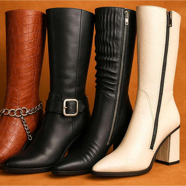 Es sind die Details, die gewöhnliche Stiefel aus den wirklich modischen Stiefeln machen. Achten Sie in der Wintersaison 2025 auf: Vintage -Tücher, Ketten, die Felsencharakter verleihen, die obere Harmonika ähneln, stick- und asymmetrische Schlösser kontrastierender Nähte. Minimalistische Modelle gewinnen Charakter dank interessanter Hauttexturen - Schlangendruck, Krokodilmuster oder empfindliches Drücken sind oben.