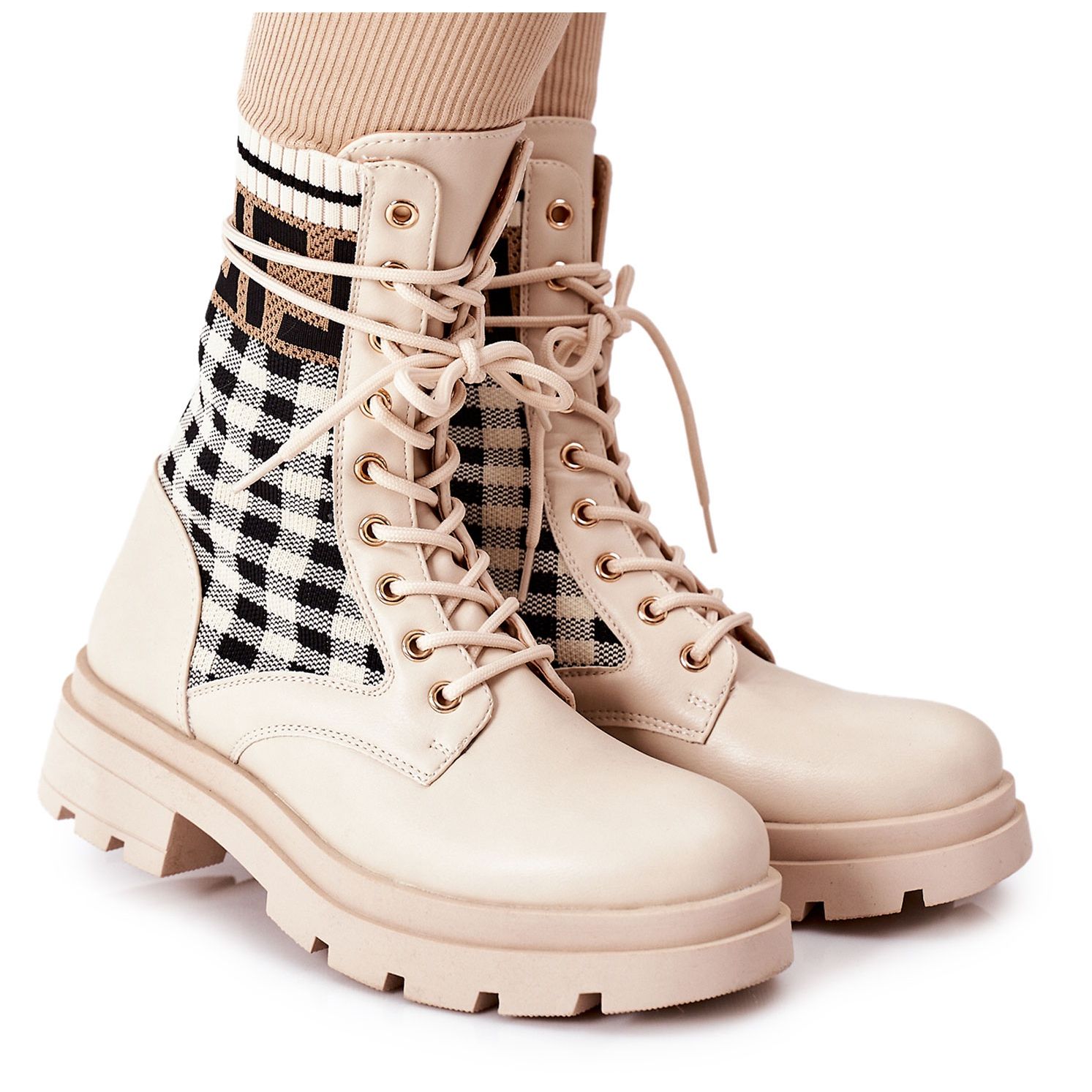 Lernen Sie die einzigartigen Worker aus elastischem Stoff in Beige kennen, die perfekt in Ihre Frühling-Sommer-Garderobe passen! Diese stilvollen Stiefel vereinen modernes Design mit Tragekomfort. Aus elastischem Stoff gefertigt, passen sie sich perfekt dem Bein an und sorgen sowohl für Komfort als auch für einen modischen Look.