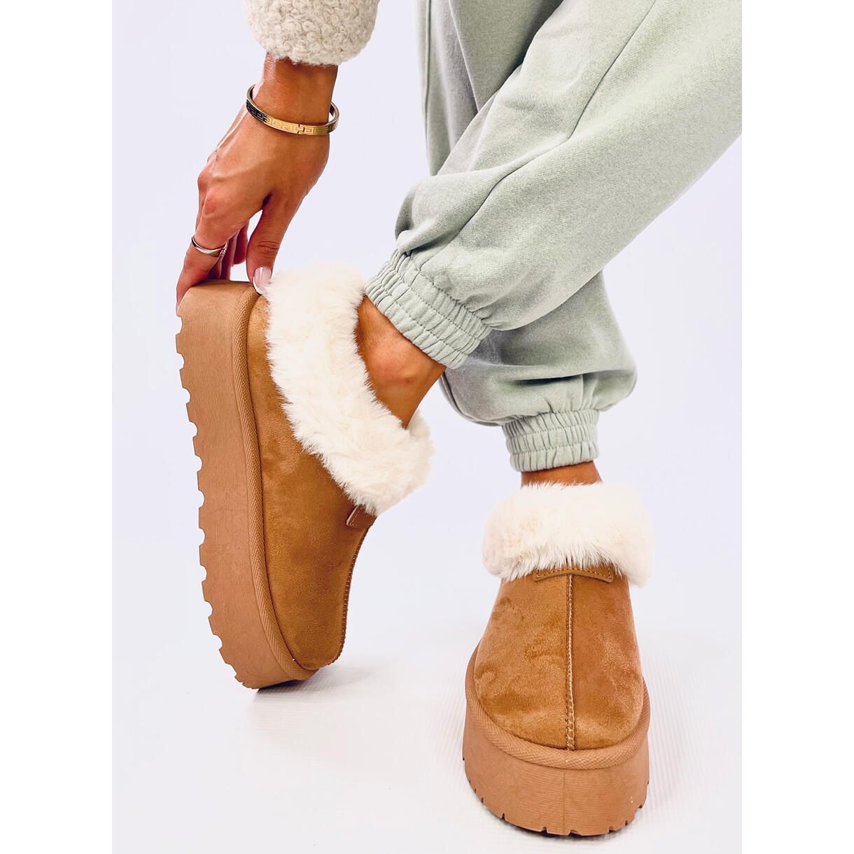 Schneeschuhe aus ökologischem Wildleder und sind durch hochwertige Materialien gekennzeichnet, die nicht nur großartig aussehen, sondern auch umweltfreundlich sind. Das dicke Fell in den Schuhen umhüllt Ihre Füße und bietet auch an den kältesten Tagen außergewöhnliche Weichheit und Komfort. Dank der höheren Ferse halten die Schneestiefel gut am Bein, was ihre Stabilität und ihren Trading -Komfort erhöht.