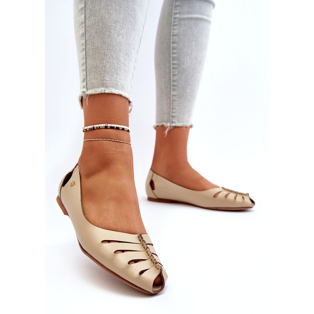 Die Ballerinas haben subtile Ausschnitte an der Vorder- und Rückseite des Oberen, was ihnen Leichtigkeit und offene Arbeitskräfte verleiht. Die weiche Leder -Innensohle kümmert sich um den Komfort Ihrer Füße, und eine flache Ferse mit einer Höhe von 1 cm gewährleistet bei jedem Schritt die Stabilität, was sie sowohl täglich als auch für elegante Anlässe zur perfekten Wahl macht.