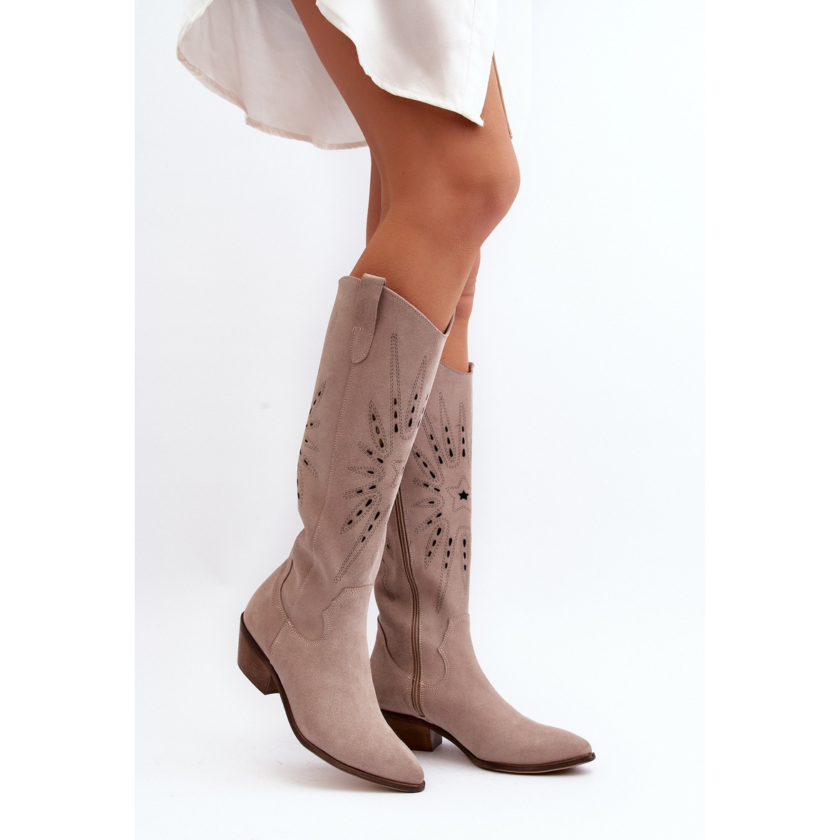 Zazoo 2909 Beige Wildleder-Stiefel mit niedrigem Absatz sind die perfekte Kombination aus Komfort und elegantem Stil. Die Designer von Zazoo beweisen, dass man Praktikabilität mit Modetrends verbinden kann und kreieren einzigartige Schuhe, die ihren Platz in der Garderobe jeder Frau finden, die Originalität und Komfort sucht.