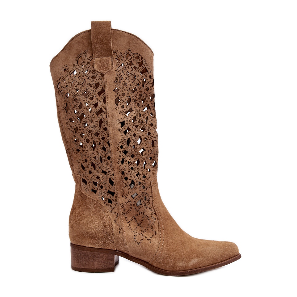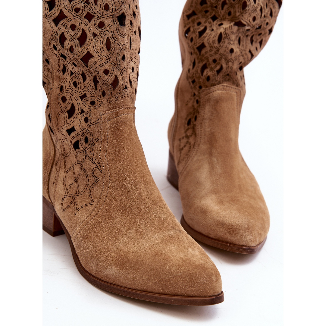 Zazoo Zazoo 3403 Durchbrochene Damenstiefel mit niedrigem Absatz, Beige