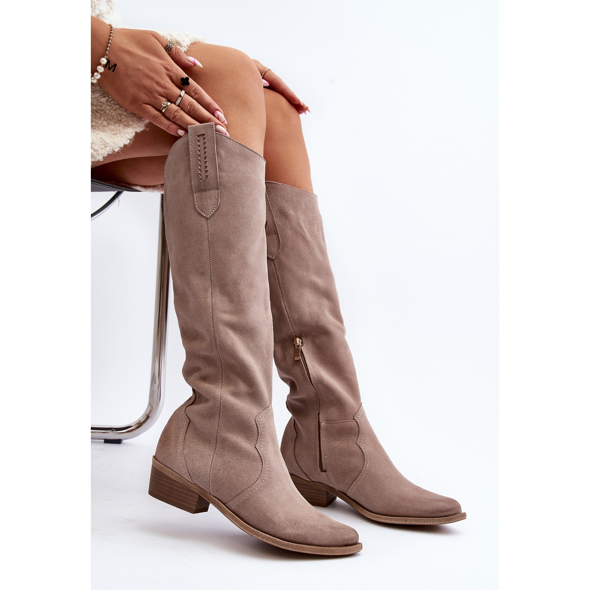 - Modell: Cappuccino-Cowboystiefel aus Wildleder für Damen