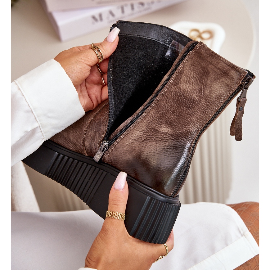 Treffen Sie Zazoo 60369 - Damen -Lederstiefel auf der Plattform in einem eleganten dunklen beige Schatten. Diese einzigartigen Stiefel sind eine ausgezeichnete Wahl für die bevorstehende Herbst/Winter -Saison und kombinieren modisches Design mit Komfort.