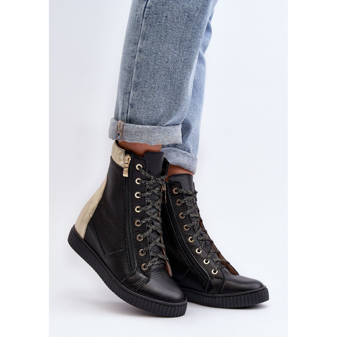 Zögern Sie nicht, die Sneaker Zazoo Black, die die Wärtung in jeder Frauengarderobe haben müssen. Ihr einfaches, elegantes Design in Kombination mit goldenen Details funktioniert sowohl in alltäglichen als auch in eleganteren Stylisationen. Investieren Sie in Komfort und Aussehen, die alle erfreuen werden!